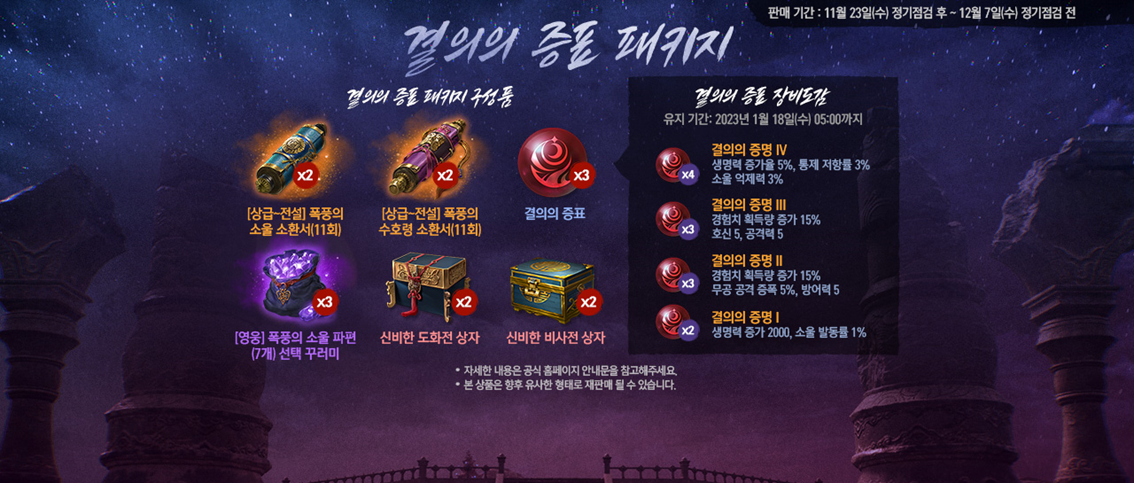 던전 이용 기간: 2022년 11월 23일(수) 정기점검 후 ~ 2022년 12월 7일(수) 정기점검 전
