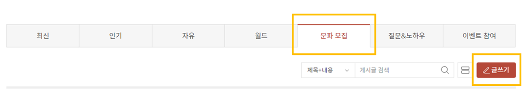 ② 문파 혹은 문파원을 모집하는 게시글 작성