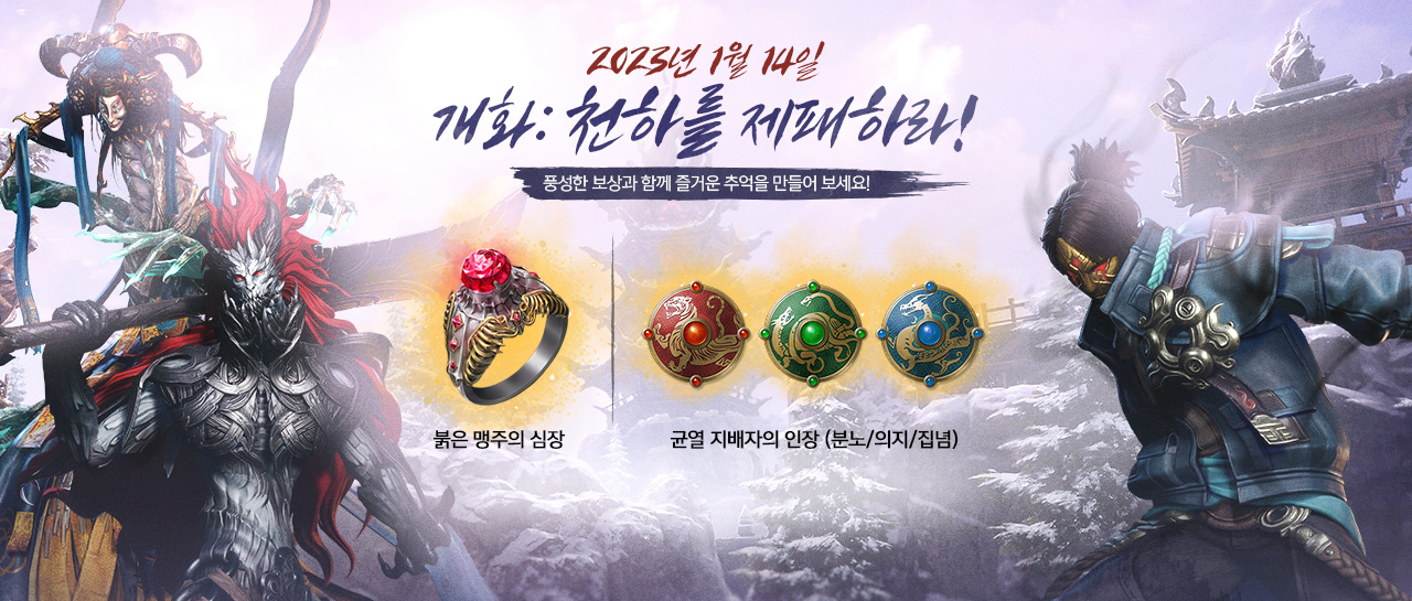 - ‘개화: 천하를 제패하라’ 이벤트는 한시적으로 진행되는 이벤트이며, 추후 다른 방식으로 이벤트가 진행될 수 있습니다.