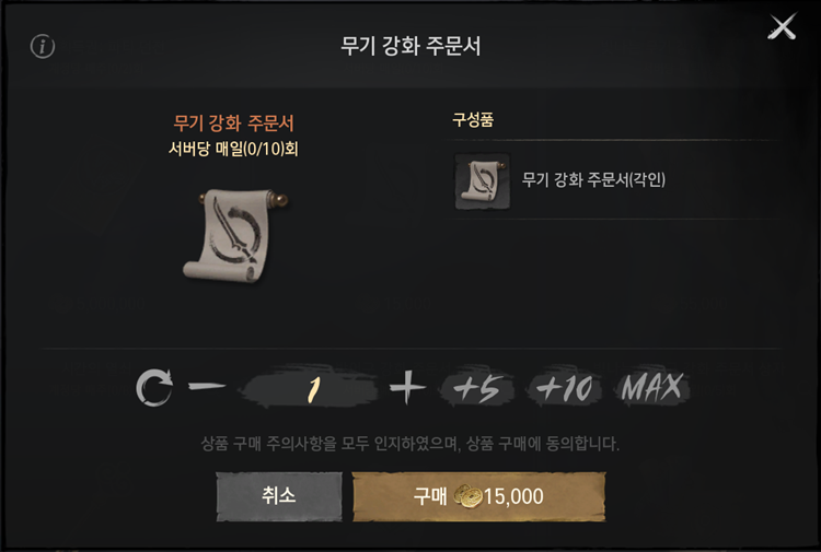 2 | 금괴: 100만(각인) | 1 | [상급~전설] 폭풍의 수호령 소환서(11회) | 3 | 10 |