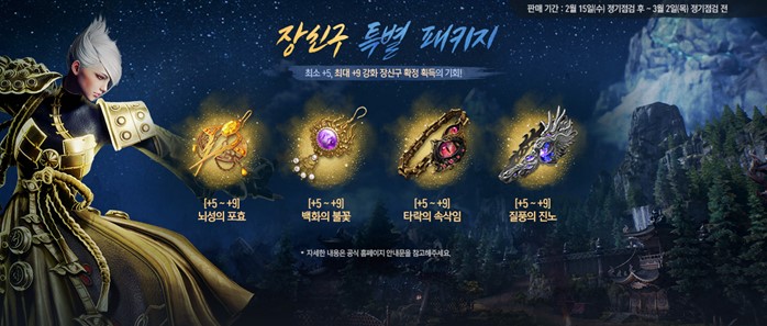장신구 특별 패키지 | 3,000 신석 | [+5~+9] 장신구 특별 선택 상자 | 4 | X / X / X | 서버당 10회 |