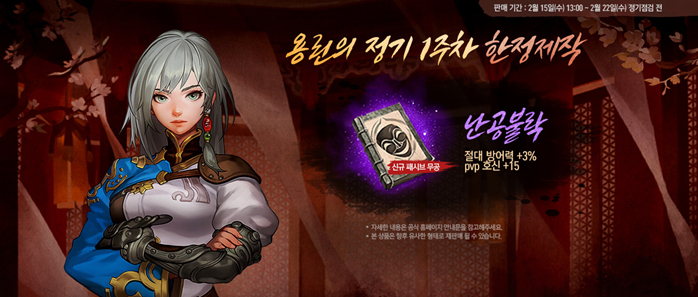 2/15(수)~2/16(목) | 12:00 | 보상 획득권: 파티 던전(이벤트) 1개 | 발송 시간으로부터 1일 |
