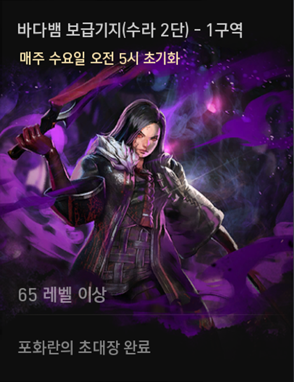 바다뱀 보급기지(수라 2단) 1구역 | 불마의 억압(각인) 불마의 분노(각인) 불마의 의지(각인) | 암천의 기운(각인) |