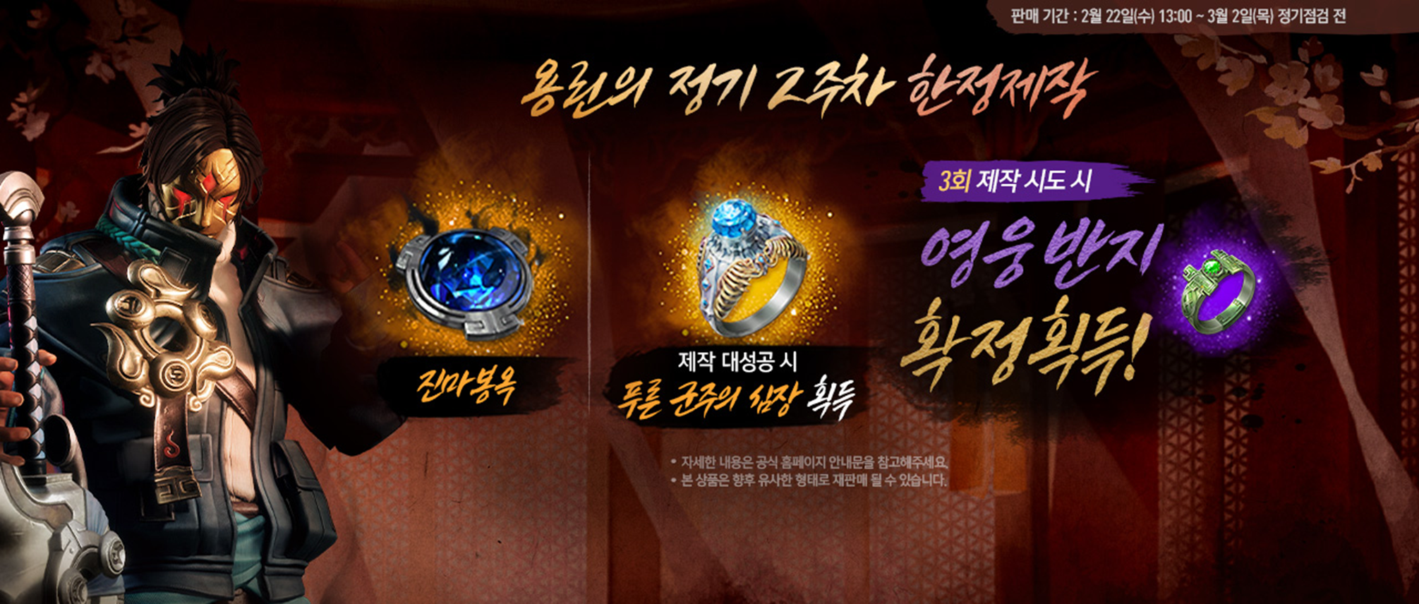 - 판매 기간 : 2023년 2월 22일(수) 정기점검 후 ~ 2023년 3월 8일(수) 정기점검 전