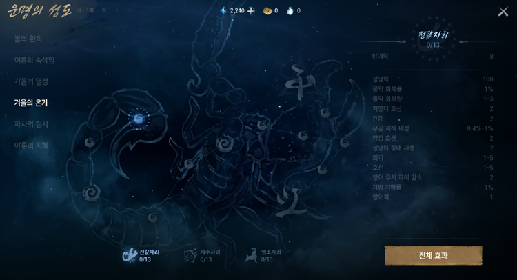 - 새롭게 추가되는 운명의 성도 ‘겨울의 온기’는 총 3개의 별자리(전갈자리, 사수자리, 염소자리)로 구성되었습니다.