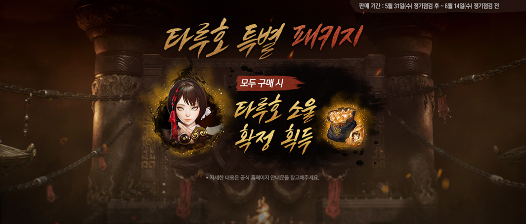 - 타루호의 스토리팩에 등장하는 ‘흑검제 환야’와의 전투에서 사망 시, 사망 정보에 간헐적으로 ‘환야’ 이름이 다른 이름으로 표시되던 현상을 수정하였습니다.