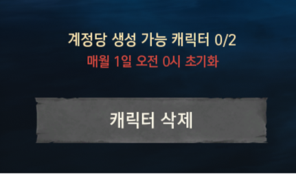 캐릭터 생성 제한은 매월 1일 오전 0시에 초기화되며, 계정당 매월 2개의 캐릭터를 생성하실 수 있습니다.