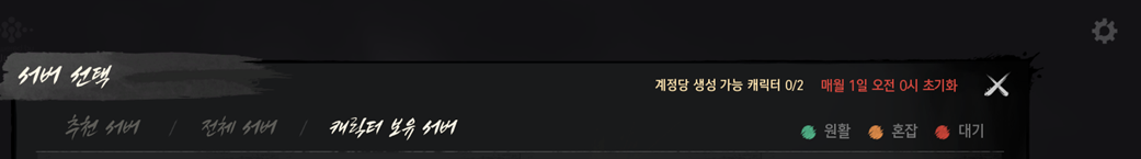 타이틀의 서버 선택창과 캐릭터 선택 화면에서 생성 제한을 확인하실 수 있습니다.