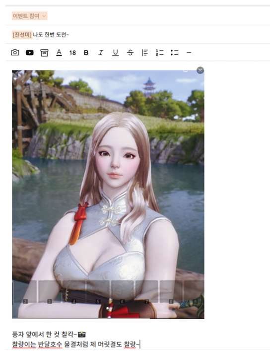 - 진선미는 참여 정성도, 배경(반달호수)과 캐릭터의 조화 등을 고려하여 선정합니다.