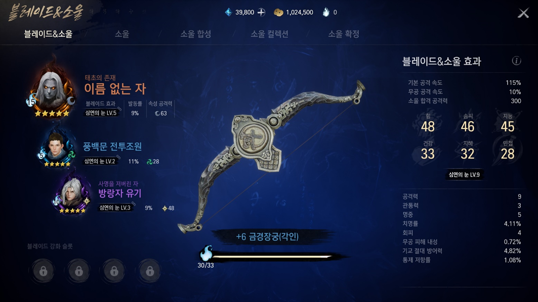 블레이드 효과 최대 Lv이 한 단계 낮아서 활용성이 모자랐던 ‘심연의 눈’ 최대 레벨을 다른 전설 소울과 동일하게 상향되었습니다.