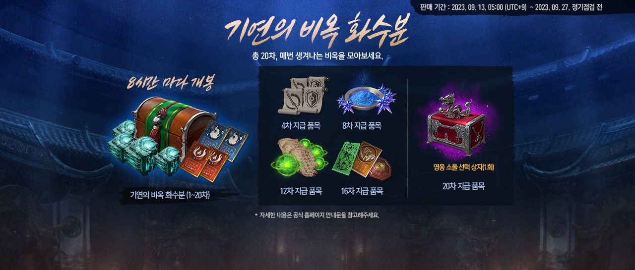 - 판매 기간: 2023년 9월 13일(수) 정기점검 후 ~ 2023년 9월 27일(수) 정기점검 전