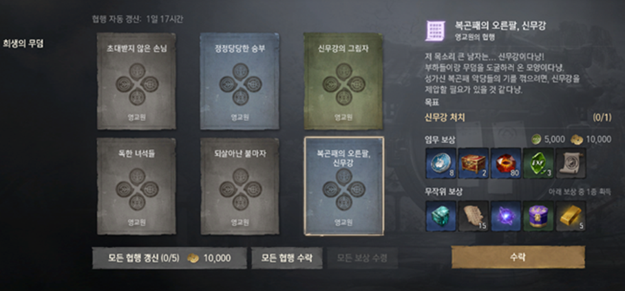 가급적 클래식 던전을 이용하는 시점에 협행을 수락하시길 바라며, 그 전에 수락했다면 수락한 협행을 포기하는 것으로 해결할 수 있습니다.