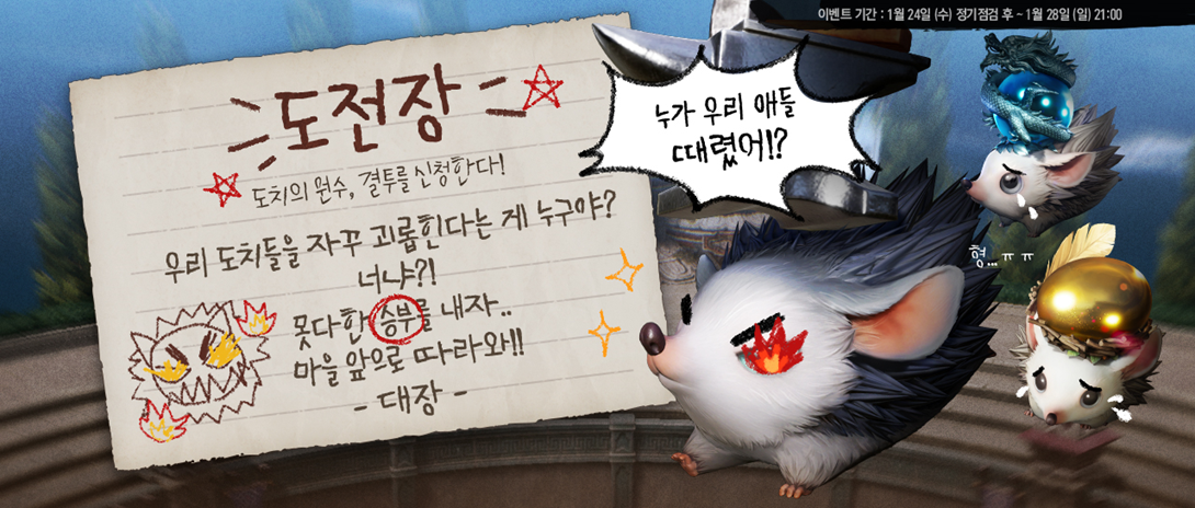 이벤트 | 도전장 : 도치의 원수, 결투를 신청한다! | 2024. 1. 24. ~ 2024. 1. 28. | |