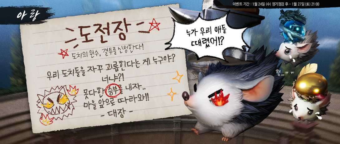 도전장 : 도치의 원수, 결투를 신청한다! | 2024. 1. 24. ~ 2024. 1. 27. | |