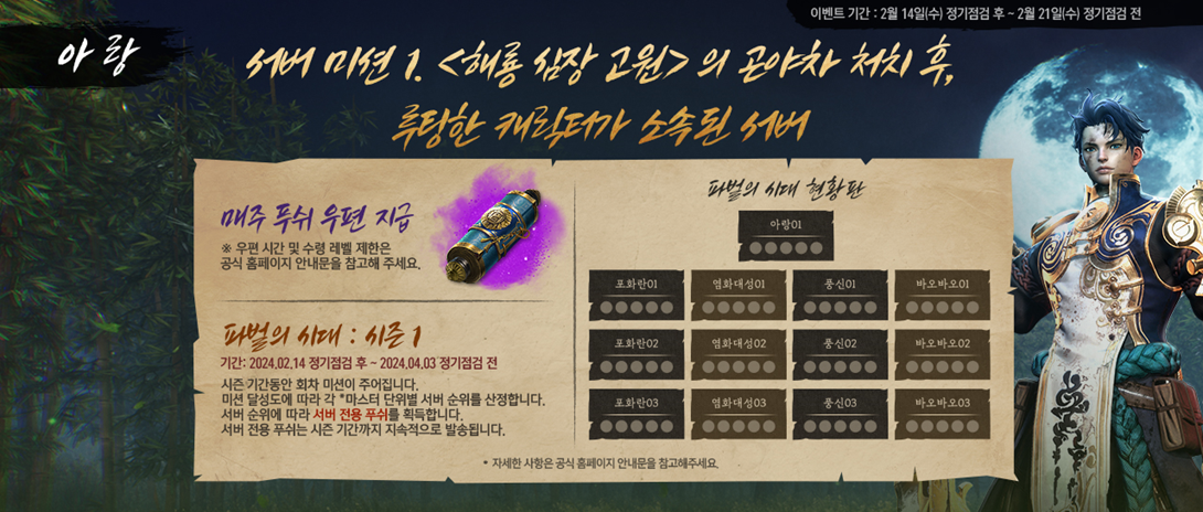 이벤트 | 파벌의 시대: 시즌 1 - 1회차 | 2024. 2. 14. ~ 2024. 2. 21. | |