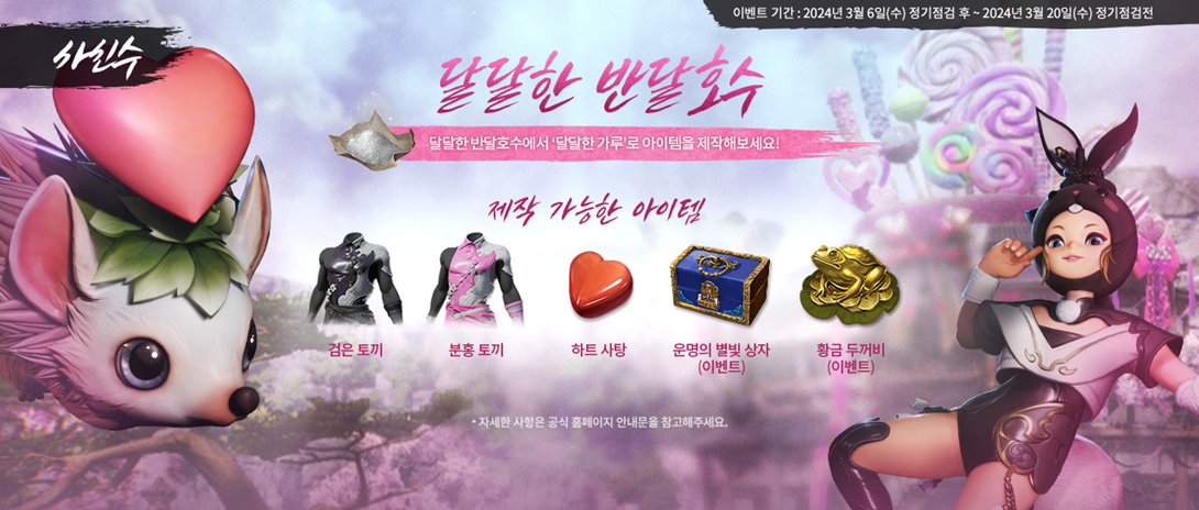 이벤트 | [이벤트] 달달한 반달호수 | 2024. 3. 6. ~ 2024. 3. 20. | |