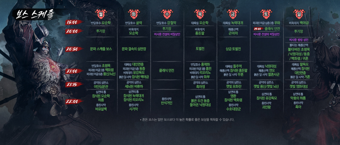 (등장 횟수가 줄어든 보스의 경우, 해당 보스의 드랍률이 상향되었습니다.)