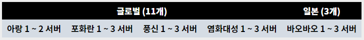 글로벌 14개 서버가 하나의 공간에 집결합니다.