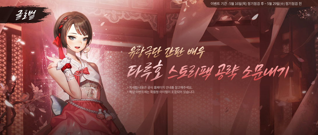* ‘유랑극단 간판 배우 타루호’ 스토리팩은 상점에서 계정당 1회 제한으로, 10,000,000 금화에 구매 가능합니다.