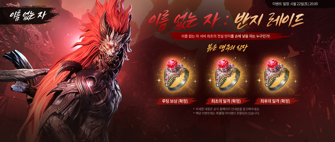 - <이름 없는 자: 반지 레이드> 이벤트에 등장하는 ‘붉은 약탈자 귀혼’은 이벤트에서만 등장합니다.
