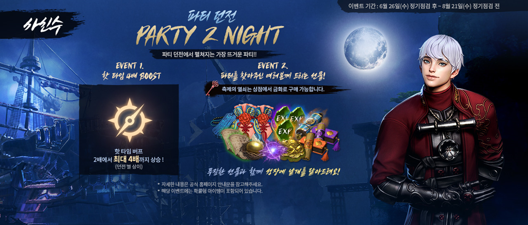 [이벤트] 파티 던전 PARTY 2 NIGHT(연장)(사신수) | 2024.06.26. ~ 2024.08.21 | |