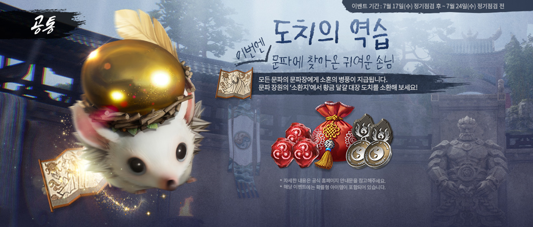 [이벤트] 도치의 역습: 문파에 찾아온 귀여운 손님(공통) | 2024. 7. 17. ~ 2024. 7. 31. | |