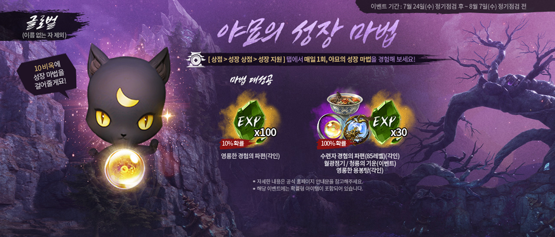 [이벤트] 야묘의 성장 마법 (글로벌) | 2024. 7. 24. ~ 2024. 8. 7. | |