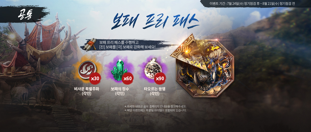 [이벤트] 보패 프리 패스 (공통) | 2024. 7. 24. ~ 2024. 8. 21. | |