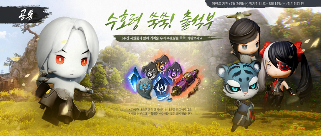 이벤트 | [이벤트] 수호령 쑥쑥! 출석부(공통) | 2024. 7. 24. ~ 2024. 8. 14. | |