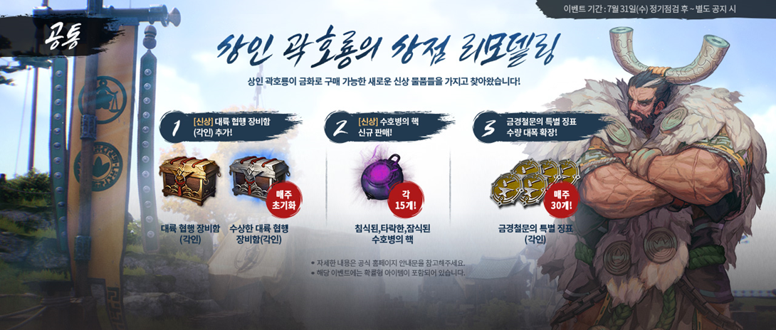 이벤트 | 상인 곽호룡의 상점 리모델링(공통) | 2024. 7. 31. ~ 별도공지시 | |