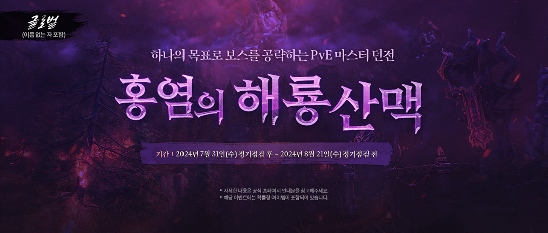 [이벤트] 홍염의 해룡산맥(글로벌) | 2024. 7. 31. ~ 2024. 8. 21. | |