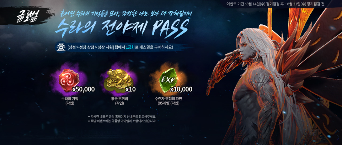 [이벤트] 수라의 전야제 PASS | 2024. 8. 14. ~ 2024. 8. 21. | |