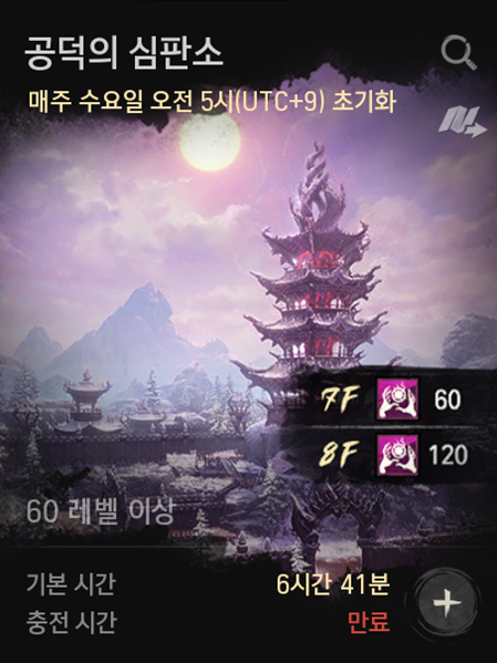 - 공덕의 심판소 2~4층 입장에 소모되는 아이템이 ‘축지석: 공덕의 심판소 하층부’, 5~8층 입장에 소모되는 아이템이 ‘축지석: 공덕의 심판소 상층부’로 변경되었습니다.