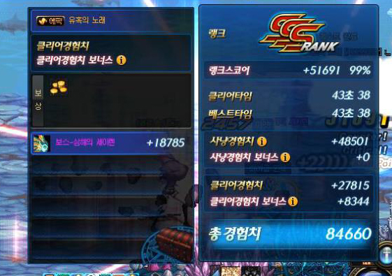 - 수행한 에픽 퀘스트의 클리어 경험치와 퀘스트 경험치 보너스가 표시됩니다.