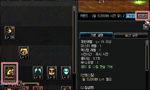 * 현재 변경하고 있는 스킬에 강조효과로 시안성이 개선됩니다.