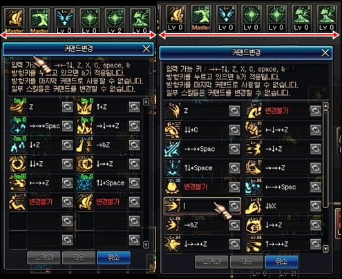 * 스킬샵에서 커맨드 변경이 되지 않을 때(커맨드 변경불가 스킬, 습득하지 않은 스킬,