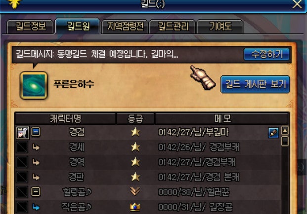 현제 동맹길드가 존재하며 동맹길드는 추가데미지 길드입니다.