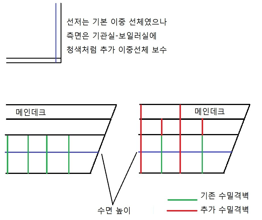 첫번째 기관실과 보일러실을 이중선체로 보완한 것이었습니다.