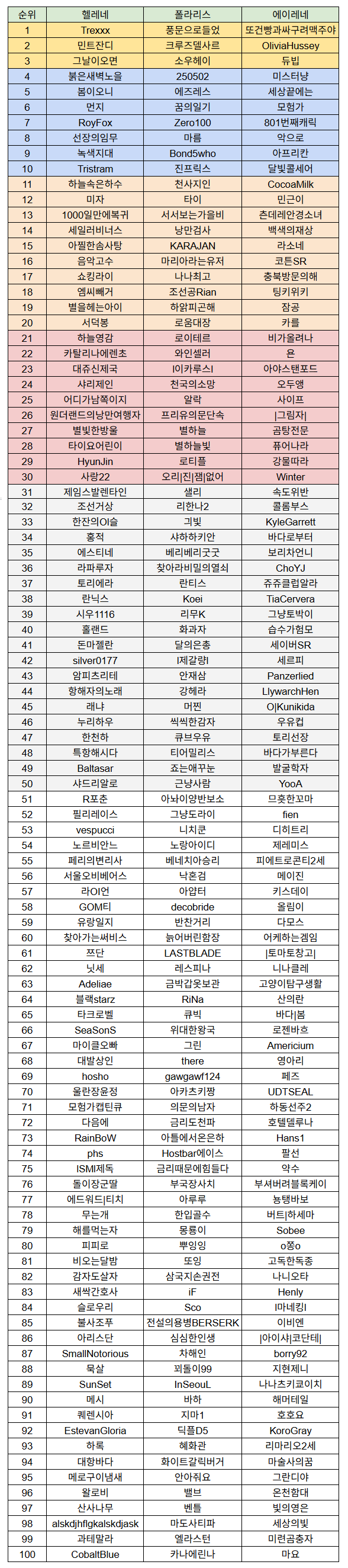 서안을 발견하라 이벤트에 당첨되신 제독님들의 명단과 순위를 안내드리겠습니다.