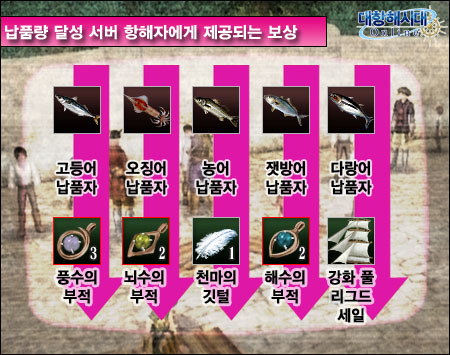 <각 어종을 10만 마리 이상 모으지 못했을 때 서버의 납품자들에게 지급되는 보상>