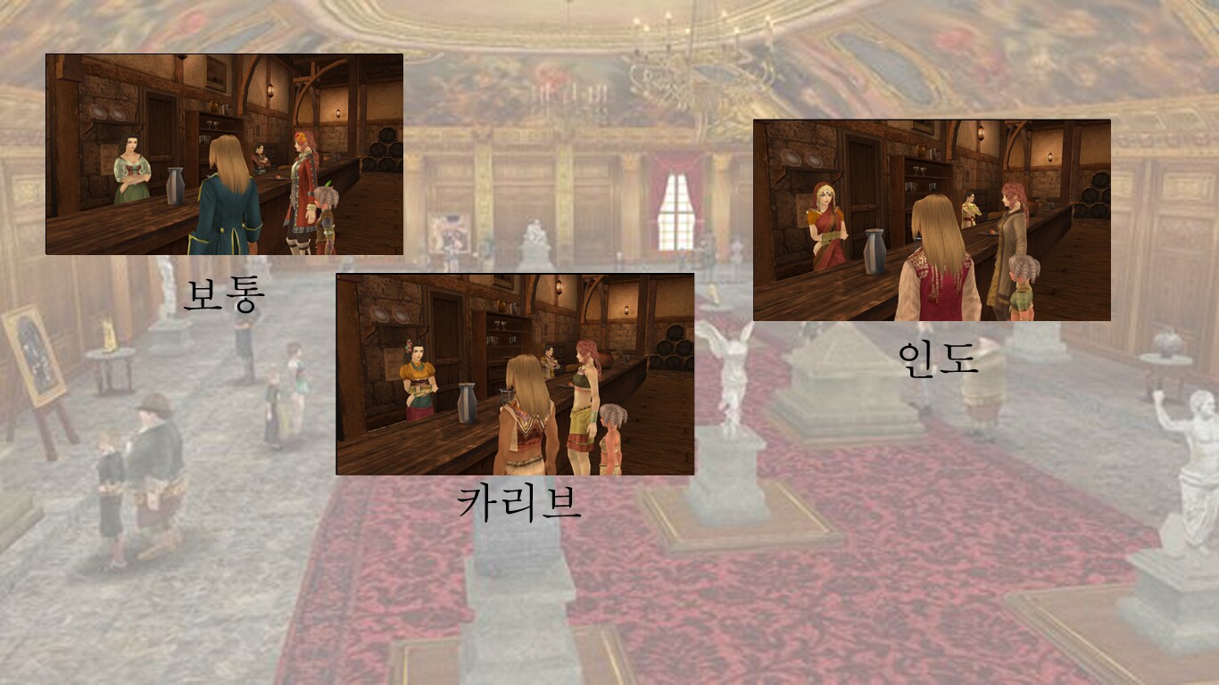 예를 들어, 주로 카리브에 관한 장식품들이 전시가 된다면, 주점 등의 NPC의 의상이 카리브 풍으로 바뀌게 됩니다.