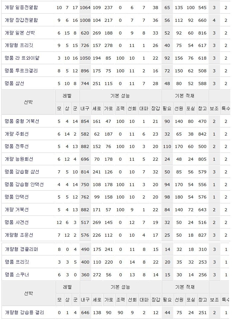 위의 선박중 29레벨 이하 선박으로 딱 탈만큼 맞추되 여유총합레벨이 29랩 이하에서 2-3 이상은 있어야 운용하기 편하다.