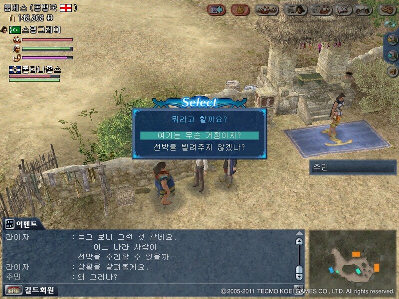 이제 항관옆의 주민에게 말을 걸어보면
