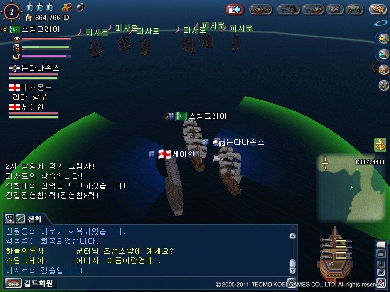 여튼 싸운장소에서 남쪽으로 내려가다보면 강습이 걸리고 중갤3척과 전열2척정도가 싸움을 걸어옵니다만..
