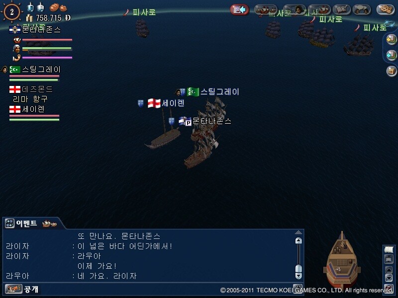 이제 밖으로 나가 쭉 서쪽으로 직진하다보면 이벤트함대가 보입니다 클릭하면 바로 전투 돌입!