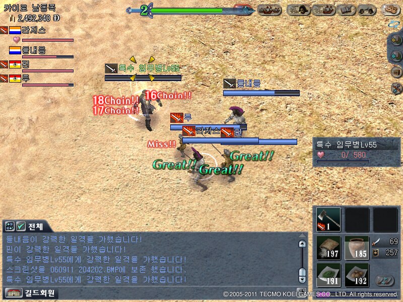 특수 임무병 55Lv 10~12체인에 약을 쓰도록 해야함