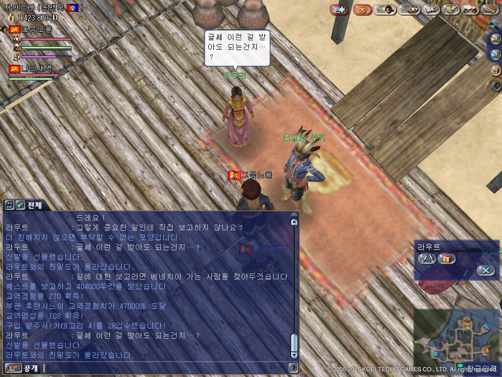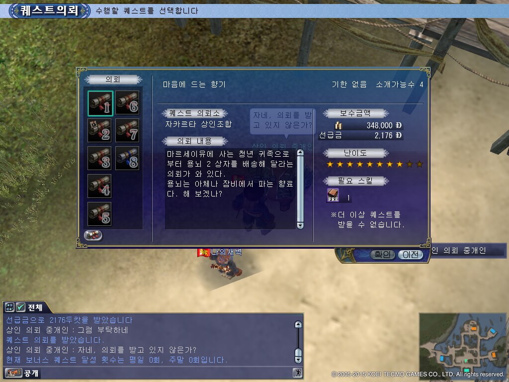 그리고 광장에 있는 상인 의뢰인에게 마음에 드는 향기 라는 퀘스트를 받으십니다.