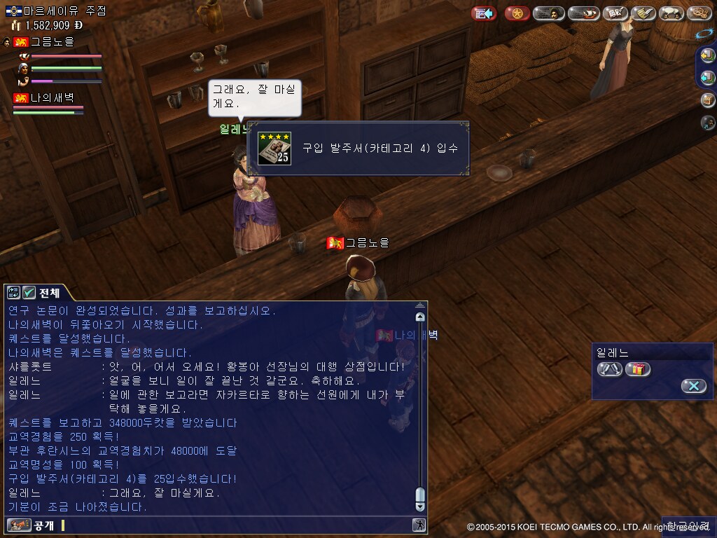 베네치아로 이동할때 잠깐 마르세이유에 들러 퀘 완료 해 주시고, 여급에게 옷 던져주고 보고하면 된답니다.