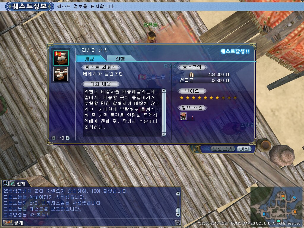 일단 베네에서 출발할때 요런 퀘를 하나 받습니다.