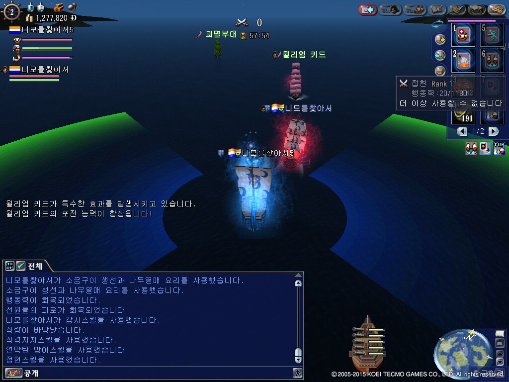 윌리엄 키드경운 전투가 상당히 근거리에서 시작해요,,